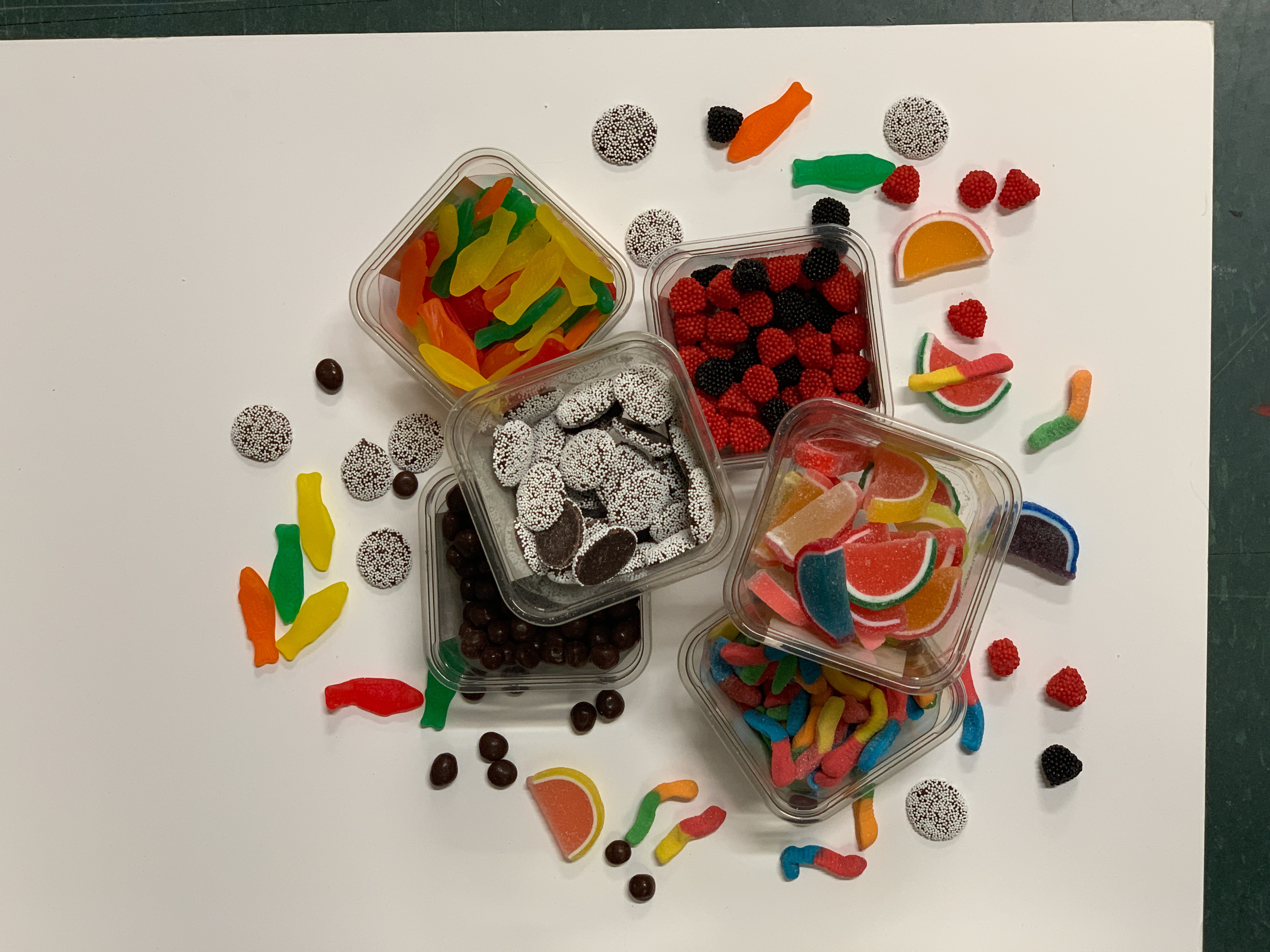 Signage made for our store brand candy. I set up the original image then edited the color in CameraRaw then removed the background for use on our company's woodgrain background. Final signage created in Indesign.